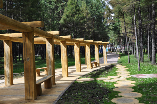 龙门森林公园 位于农场场部北部,202国道南部。公园于2009年6月开始建设,当年9月完工,占地面积10万平方米,总投资40万元。公园内设过桥、甬道、长廊、凉亭、石桌、假山等。除甬道和假山之外,所有的建筑都是仿木制结构,造型逼真、美观。长长的甬道延伸到公园每个角落,荡漾期间,可以观松景,听松涛,芳草萋萋,沁人心脾。秋季来临,园内鲜花盛开,各种争相与游人见面的蘑菇千姿百态,让人流连忘返,醉人的美景使人们情不自禁联想起这片森林缔造者的艰辛与伟大。